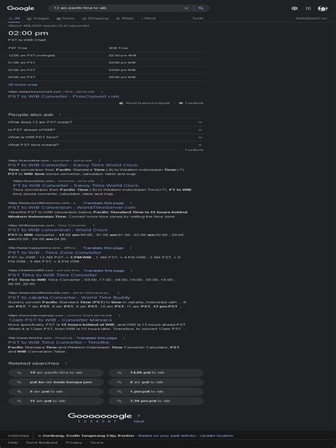 • Pacific Time (PT) to WIB: This is the biggest difference. WIB is 15 hours ahead of PT during standard time, and 16 hours during DST. If it’s 6 AM in Los Angeles during DST, it’s 10 PM in Jakarta.