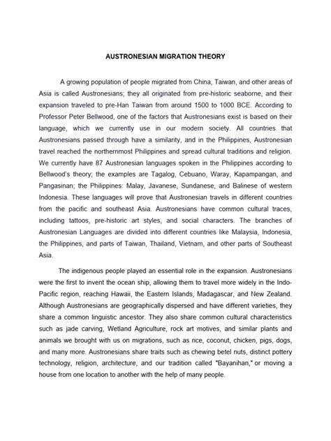 So, the Austronesian migration theory , in a nutshell, proposes that a group of people, speaking a proto-Austronesian language, originated somewhere in East Asia , likely Taiwan , about 5,000 to 6,000 years ago. From this homeland, these intrepid seafarers began an astonishingly rapid and widespread expansion. Think about it: navigating vast oceans with rudimentary technology, settling island after island, stretching all the way from Madagascar off the coast of Africa to Easter Island in the Pacific. It’s mind-boggling! For us Tagalogs, this means our linguistic and cultural ancestors were part of this incredible outward push. The theory suggests that as these Austronesian speakers migrated south and east, they eventually reached the Philippines , bringing with them their languages, agricultural practices (like rice cultivation), and cultural traditions. It’s believed that the various ethnolinguistic groups in the Philippines, including the ancestors of the Tagalog people, are descendants of these early Austronesian settlers. The sheer scale of this migration is what makes it so compelling. It’s not just a local movement; it’s one of the most extensive migrations in human history. Scientists and linguists have pieced this together by looking at language similarities. You see, many languages across this vast region share common root words and grammatical structures. For instance, words for ‘two’, ‘three’, ‘hand’, ‘eye’, and basic kinship terms often show remarkable parallels between languages spoken thousands of miles apart. This linguistic evidence is like a breadcrumb trail left by our ancestors, guiding us back to a common origin. The Tagalog language itself, with its unique sounds and vocabulary, carries these ancient echoes. It’s a living testament to this grand migration, a vibrant thread connecting us to that distant past. The theory isn’t just about people moving; it’s about the movement of ideas, technologies, and ways of life that shaped the diverse cultures we see today across Island Southeast Asia, Oceania, and beyond. It’s a story of human ingenuity, resilience, and an insatiable curiosity that propelled our ancestors across the world’s largest ocean.