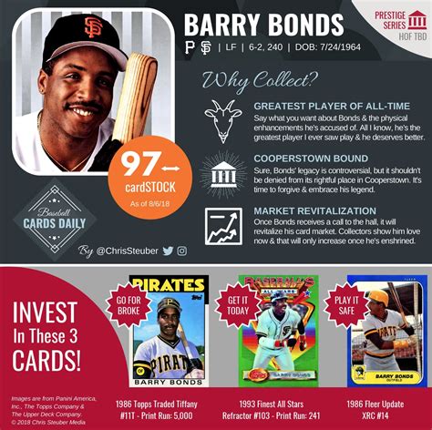 Hey guys! Ever wondered if that old Barry Bonds baseball card tucked away in your collection is worth a pretty penny? You’re not alone! Barry Bonds is a name that resonates deeply in baseball history, and his cards, especially those featuring him in his iconic San Francisco Giants uniform, can be incredibly sought after by collectors. This guide is all about diving deep into the world of Barry Bonds Giants card value . We’ll explore what makes these cards valuable, how to assess their worth, and what factors you should be looking out for. Whether you’re a seasoned collector or just starting, understanding the market for Bonds’ cards is key to making informed decisions. So grab your magnifying glass and let’s get started on uncovering the potential treasure in your hands!