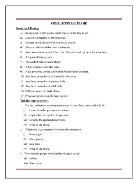 Hey everyone! Are you ready to dive into the amazing world of combustion and flames ? This is a super important chapter in your Class 8 Science curriculum, and it’s packed with cool concepts and real-world examples. Think about it: from the food we cook to the engines that power our cars, combustion plays a vital role. In this article, we’ll break down everything you need to know about combustion and flames , making sure you understand the key terms, processes, and applications. So, grab your notebooks and let’s get started. We’ll explore the science behind burning, the different types of combustion, what a flame is, and how to control it. You’ll learn about the conditions necessary for fire, the different zones of a flame, and the various fuels we use every day. By the end of this journey, you’ll have a solid grasp of this fascinating topic. Understanding combustion and flames isn’t just about passing your science exam; it’s about understanding how the world around us works! From the simple act of lighting a match to the complex processes within a power plant, combustion is everywhere. We’ll also touch upon the importance of safety and how to prevent fires. So, buckle up, because we’re about to ignite your curiosity. The world of combustion and flames is waiting to be explored, and we’re just getting started. This chapter is super relevant to your daily life. You’ll be able to explain how your gas stove works, why a candle burns, and the science behind a forest fire. Understanding this subject will make you more aware of the world around you and how to stay safe. Get ready to become a combustion and flame expert! This journey through science will be enlightening, educational, and, dare I say, a blast! Remember, science is all about understanding the world around us, and this chapter is a perfect example of how that works. Learning about combustion and flames is like unlocking a secret code to understand how things work. So, are you ready to become a combustion guru? Because this is going to be awesome.