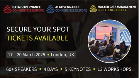 The Data & AI Governance Conference Europe is your one-stop shop for all things data and AI governance. Whether you’re a seasoned pro or just starting out, you’ll find something to learn and gain from this event. So, mark your calendars, book your tickets, and get ready to take your data governance , AI governance , and Master Data Management skills to the next level. See you there, folks!