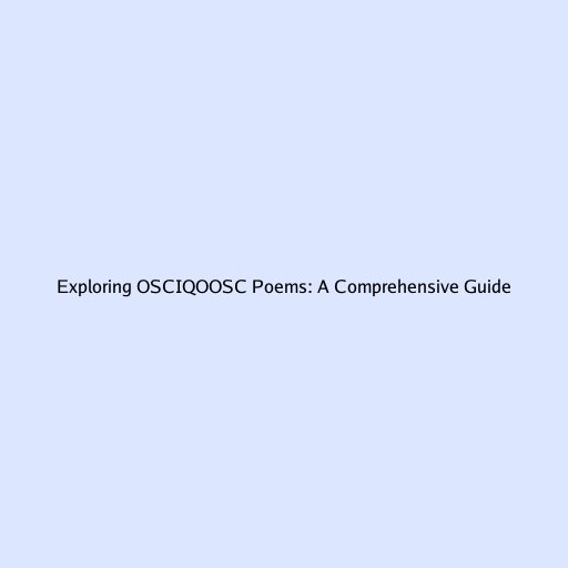 Exploring the World of OSCIQOOSC Poems: A Comprehensive Guide