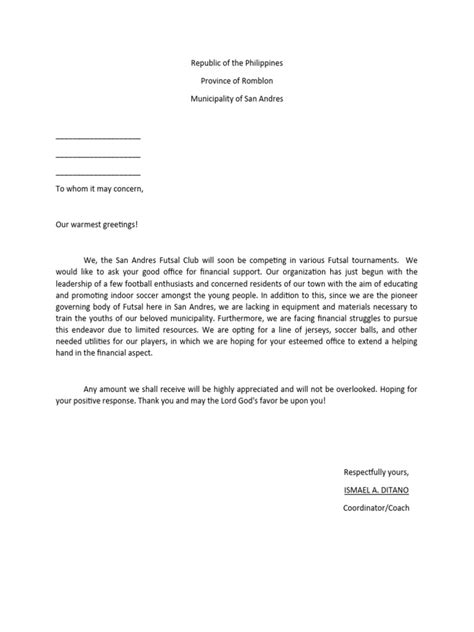 A futsal friendly match letter serves as the first point of contact between your team and the team you wish to play against. It’s more than just a formality; it’s an opportunity to make a great first impression and set the tone for a positive and respectful relationship. Think of it as your team’s ambassador! A well-written letter conveys professionalism, enthusiasm, and clear communication. It ensures that all the necessary details about the match are communicated effectively, minimizing any potential misunderstandings or confusion down the line. This includes specifics like the date, time, location, and any special rules or regulations that might apply. By taking the time to craft a thoughtful and informative letter, you demonstrate your commitment to organizing a successful and enjoyable event for everyone involved. Furthermore, a formal letter can also be useful for securing necessary permissions or approvals from relevant authorities, such as school administrations or local sports organizations. In essence, the futsal friendly match letter lays the foundation for a smooth and well-organized friendly match, fostering a spirit of sportsmanship and camaraderie between the participating teams. So, put your best foot forward and make sure your letter reflects the passion and dedication you have for the sport.