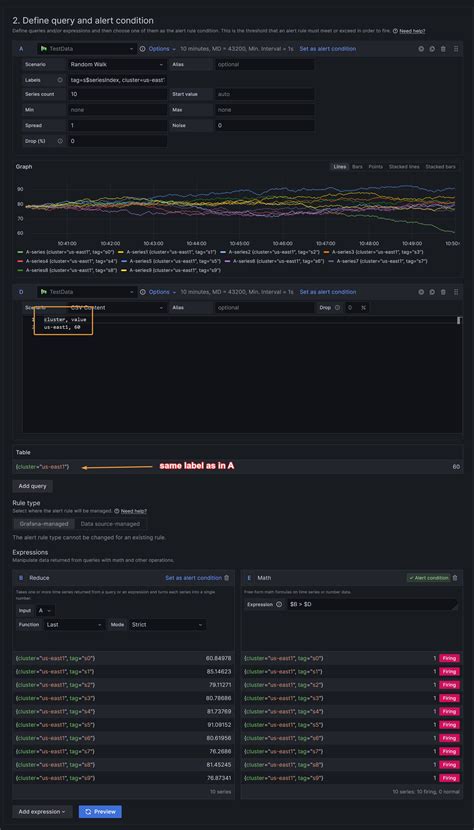 2. In the query section, enter the query that you want to use to trigger your alert. This can be a Prometheus query, a Graphite query, or any other data source supported by Grafana.