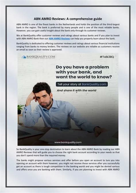 • For Banking with ABN AMRO: Take advantage of ABN AMRO’s online banking platform and mobile app to manage your finances on the go. Sign up for email or SMS alerts to stay informed about your account activity. And don’t hesitate to reach out to ABN AMRO’s customer service team if you have any questions or concerns.