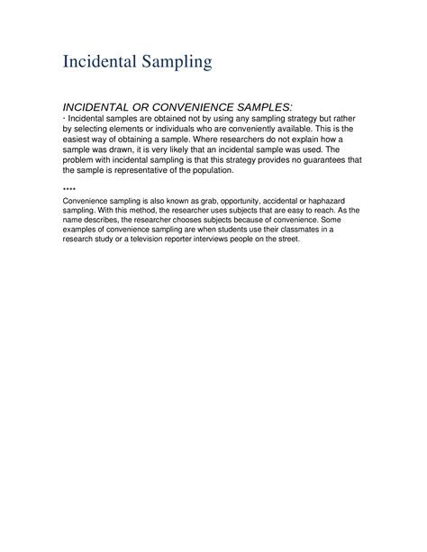 Hey guys! Ever heard of incidental sampling ? It’s a super straightforward method used in research, and understanding it can really help you grasp how some data gets collected. Basically, incidental sampling , also known as convenience sampling, is a non-probability sampling technique where researchers select participants based on their easy availability and proximity . Think of it as grabbing the most convenient people to participate in your study. It’s not about random selection; it’s about who’s right there and willing to join. This method is often used when researchers have limited time, budget, or resources, making it a practical choice for quick studies or initial explorations. While it’s easy to implement, it’s super important to remember that the results from incidental sampling might not always represent the broader population accurately. We’ll dive deeper into what that means and when this type of sampling really shines.