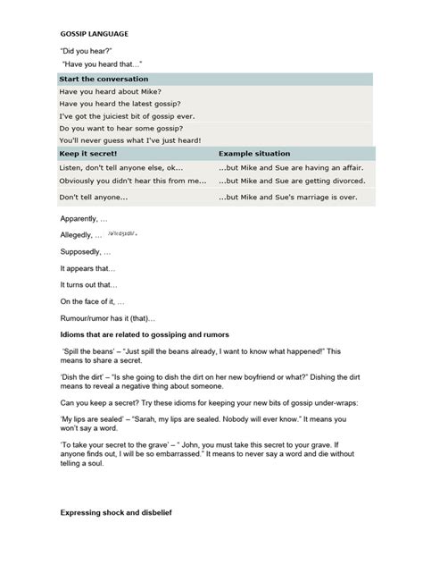 Now, let’s talk about how to actually craft sentences that have that particular gossip flavor, guys. It’s not just about what you say, but how you say it. When we want to make a sentence sound a bit more like gossip, we often employ a few tricks. One common technique is vagueness and implication . Instead of saying, “Mark got fired,” you might say, “I heard Mark isn’t working there anymore.” The phrase “isn’t working there anymore” is softer, more indirect, and leaves room for speculation. Is he fired? Did he quit? Did he get transferred? This ambiguity is the hallmark of good gossip. Another key element is authority and source attribution – or lack thereof. Sentences often start with phrases like, “So, I was talking to Brenda, and she mentioned…” or “Apparently, everyone’s saying that…” This gives the information a sense of credibility, even if the source is questionable or anonymous. It creates an illusion of widespread knowledge, making the gossip seem more significant. Emotional coloring is also vital. We inject our own feelings or imply the feelings of others involved. A sentence like, “Can you believe she wore that to the meeting?” isn’t just about the clothing; it’s loaded with judgment and surprise. It invites the listener to share in that feeling of disbelief or disapproval. Emphasis and tone play a massive role too. Using gossip in sentences often involves exaggerating certain words with your voice or in writing, using italics or bold text to highlight them. “He was so rude to the waiter!” The emphasis on ‘so’ amplifies the perceived offense. We also use contrasts and juxtapositions to make things more dramatic. “She looks so happy now, but you should have seen her a few months ago.” This contrast highlights a perceived transformation, making the narrative more compelling. Finally, rhetorical questions are a gossip’s best friend. “Why would anyone do that?” or “Isn’t that just typical?” These questions don’t require an answer; they serve to reinforce a shared opinion or judgment. Mastering gossip in sentences means understanding these linguistic tools and how they work together to create narratives that are not just informative, but also engaging, intriguing, and often, a little bit scandalous. It’s about painting a picture with words, adding dramatic flair, and inviting your audience into the unfolding story. So, go ahead, experiment with these techniques, and see how you can make your everyday conversations a little more juicy !