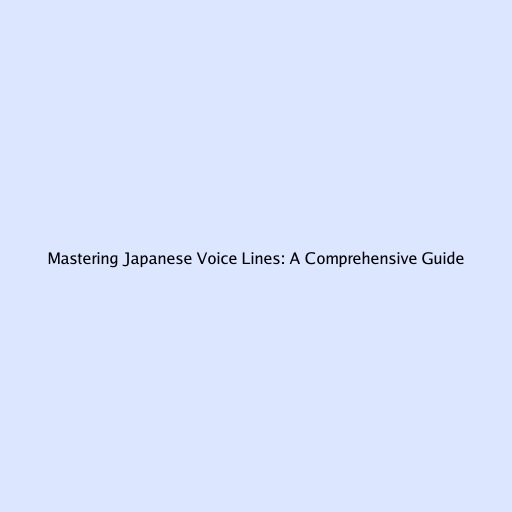 Mastering Japanese Voice Lines: A Comprehensive Guide