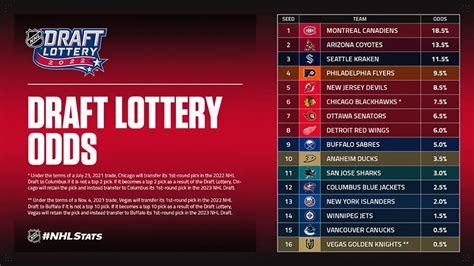 In the NHL Draft Lottery , understanding the odds and probabilities is crucial for grasping each team’s chances of securing a top draft pick. The lottery system is structured to give teams with poorer regular-season records a higher probability of winning, but it also ensures that no team is guaranteed the first overall pick. The odds are weighted based on each team’s standing in the league, with the team having the worst record receiving the highest percentage chance. For example, in the 2022 NHL Draft Lottery, the team with the worst record had approximately a 25.5% chance of winning the first overall pick. The team with the second-worst record had a slightly lower chance, and so on, down to the team with the best record among the non-playoff teams, which had the lowest percentage chance. While the odds favor the teams at the bottom, the lottery system allows for the possibility of any team jumping up in the draft order. This element of unpredictability adds to the excitement and drama of the event. The probabilities are calculated based on a specific formula that takes into account the number of teams participating and their respective regular-season records. The NHL publishes these odds in advance, providing transparency and allowing fans and analysts to assess each team’s chances. The lottery process involves a series of numbered balls being drawn to determine the winning team. The odds of a particular combination being drawn correspond to the team’s assigned probability. Understanding these odds and probabilities is essential for managing expectations and assessing the potential outcomes of the draft lottery. The lottery system is designed to balance the need for competitive balance with the desire to reward teams that have struggled during the season. The weighted odds reflect the NHL’s commitment to fairness and providing all teams with a chance to improve their roster. The draft lottery is a complex event, but understanding the underlying probabilities can help fans and analysts make sense of the outcome and its implications.