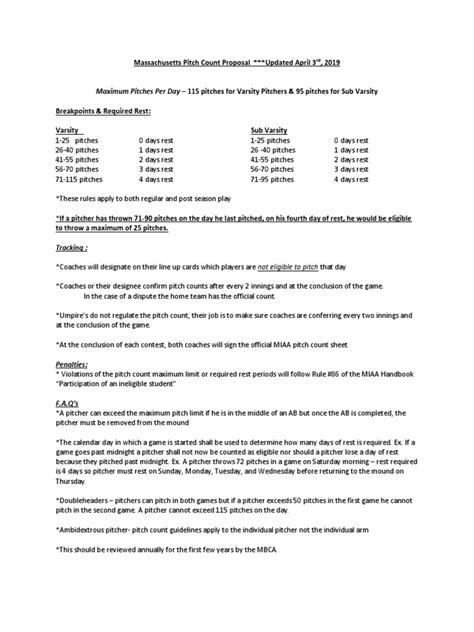 • Q: Are there any exceptions to the pitch count rules? A: Exceptions are rare, but some leagues might have adjustments depending on the situation. Consult your league’s rules.
