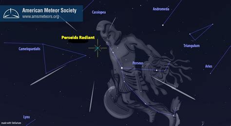 The name “Perseids” comes from the constellation Perseus. If you trace the paths of the meteors backward, they all seem to originate from a point in Perseus, called the radiant. This is just a trick of perspective, though; the meteors are coming from space and just happen to appear as if they’re radiating from that constellation.