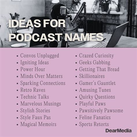 - Puns and Wordplay: If your podcast has a lighthearted tone, consider using puns or wordplay to create a clever and memorable name. Just make sure the humor is appropriate for your audience.