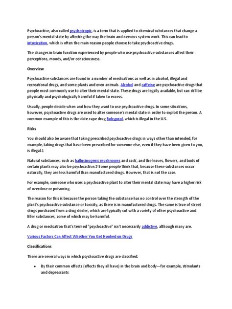 Psychoactive Substances And Their Effects