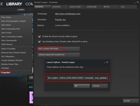 • Close the Settings window and launch Rocket League through Steam.