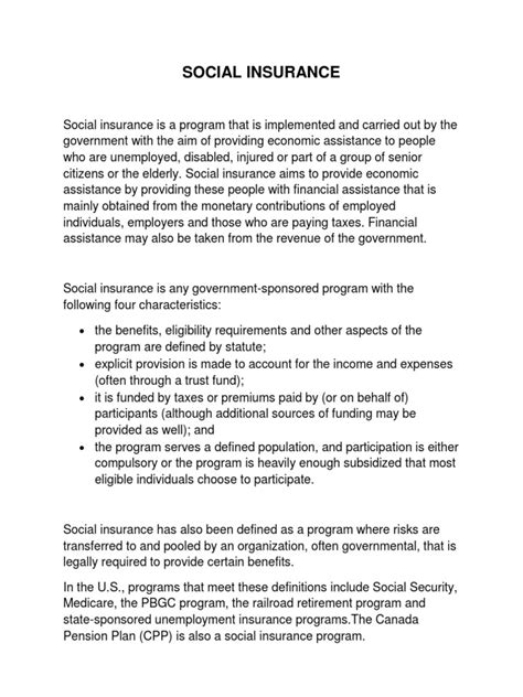 So, why should you guys care about social insurance in today’s world? It’s honestly more relevant than ever, and here’s why. Firstly, it provides economic security . We live in a world that’s constantly changing. Jobs can be lost, businesses can fail, and unexpected health issues can arise. Social insurance acts as a crucial buffer, preventing individuals and families from falling into destitution when these events occur. It ensures that you can still afford basic necessities like food, housing, and healthcare, even during tough times. This stability is fundamental for personal well-being and for the overall health of the economy. When people are financially secure, they are more likely to spend, invest, and contribute to economic growth. Secondly, it promotes social cohesion and equality . By pooling resources and providing a safety net for everyone, social insurance reduces income inequality and poverty. It sends a message that society cares about its members and that no one should be left behind simply because of bad luck or circumstances beyond their control. This shared sense of security fosters trust and solidarity among citizens, which are vital for a functioning democracy and a harmonious society. Thirdly, it supports public health . Social health insurance ensures that people can access necessary medical care without facing bankruptcy. This leads to a healthier population overall, which benefits everyone. When more people can afford to see a doctor, diseases can be caught earlier, and chronic conditions can be managed more effectively, reducing the burden on the healthcare system in the long run. Finally, it provides dignity and independence . Social insurance isn’t about charity; it’s about entitlement based on contributions and societal agreements. It allows individuals to maintain their dignity and independence during difficult periods, knowing that they have a right to support. Whether it’s a pension in old age, support during unemployment, or help with medical bills, these benefits allow people to navigate life’s challenges with less fear and more agency. In essence, social insurance is a cornerstone of a just and prosperous society. It’s an investment in people, ensuring that everyone has a chance to live a secure and dignified life. It’s a system that reflects our shared humanity and our commitment to looking out for one another. Pretty important stuff, right guys?