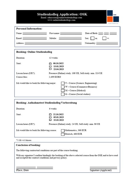 - Application Form: This is usually available on the Studienkolleg website, which you will need to fill out.
